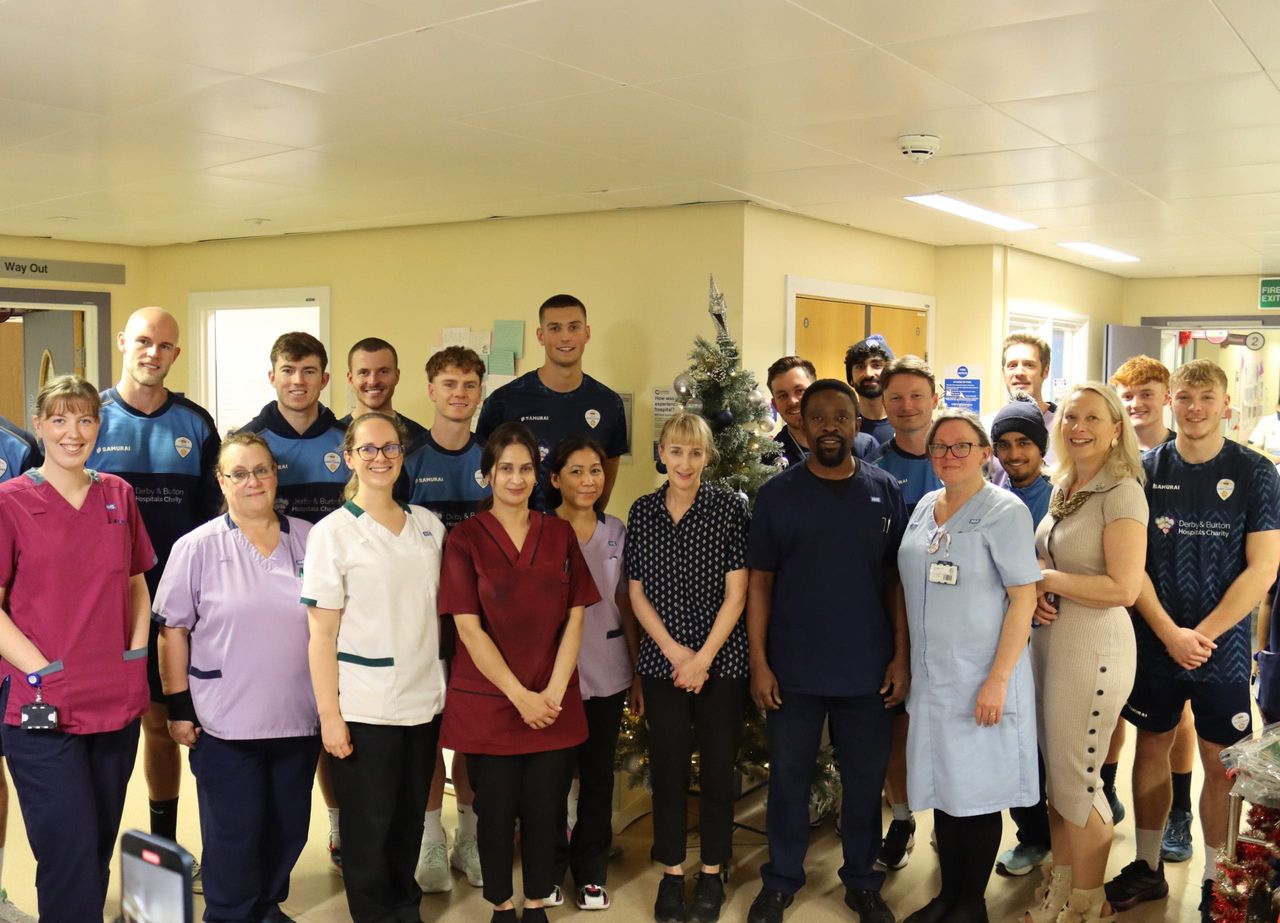 Patients and staff at Derby’s Florence Nightingale Community Hospital enjoyed an early dose of festive spirit this week as players and staff from Derbyshire County Cricket Club dropped in for a special visit arranged by Derby & Burton Hospitals Charity.