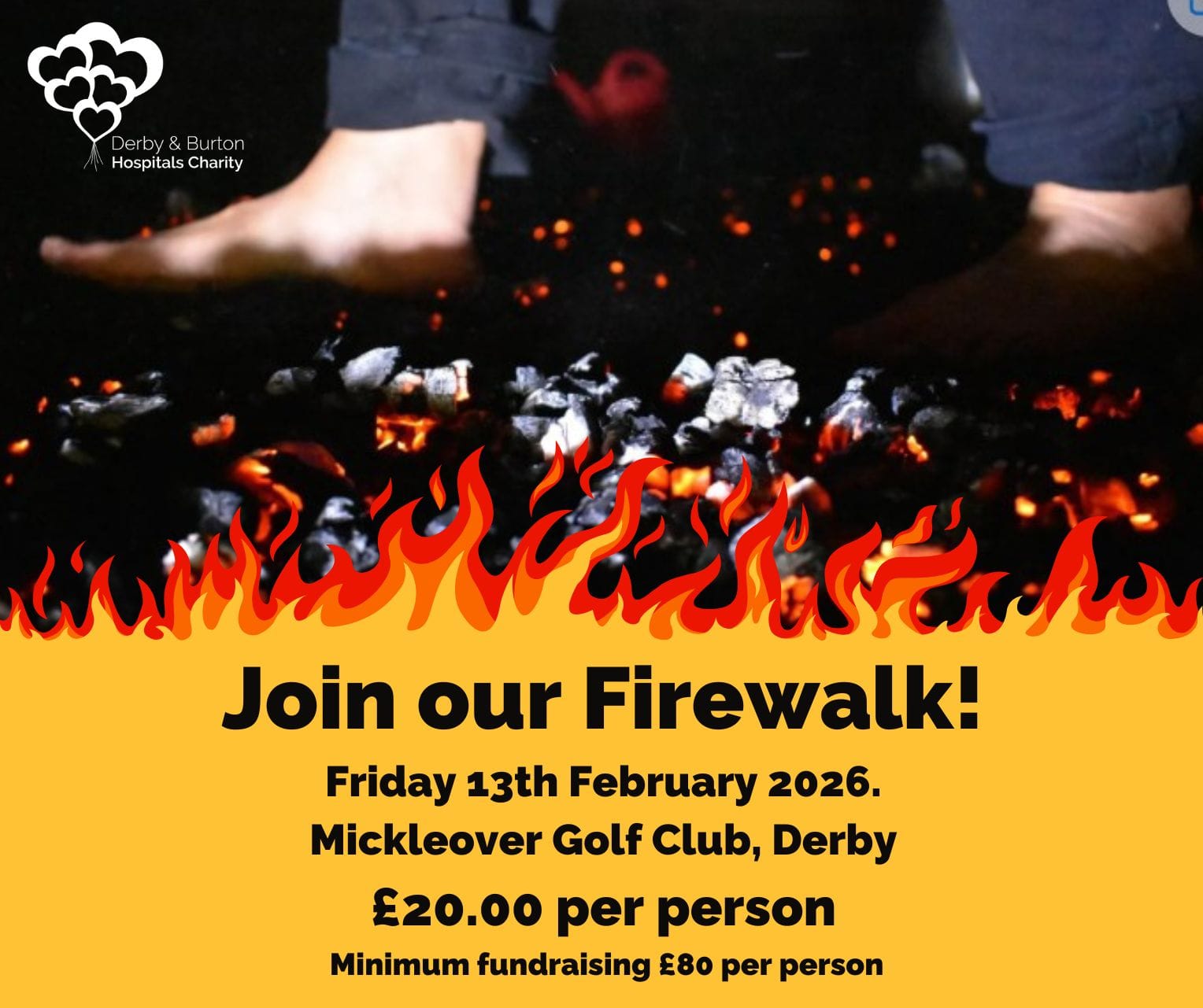 Our Firewalk is taking place on Friday 13th February 2026 CLICK HERE TO PURCHASE TICKETS Are you ready to heat things up and raise vital funds for a great cause? Why not make 2025 the year you give back and truly challenge yourself? This is your chance to walk through fire — literally — and...