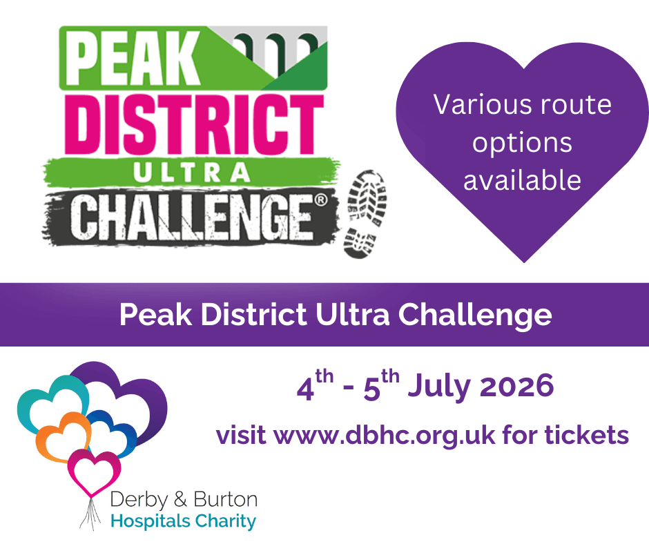 Derbyshire Dales Trail Run 22K - 13th September 2025 - TO BOOK YOUR PLACE, CLICK HERE Registration is £20 but we do ask that you raise a minimum of £150.00 to support our charity. You'd be making a huge difference to the lives of patients and staff being cared for and working in our hospitals....